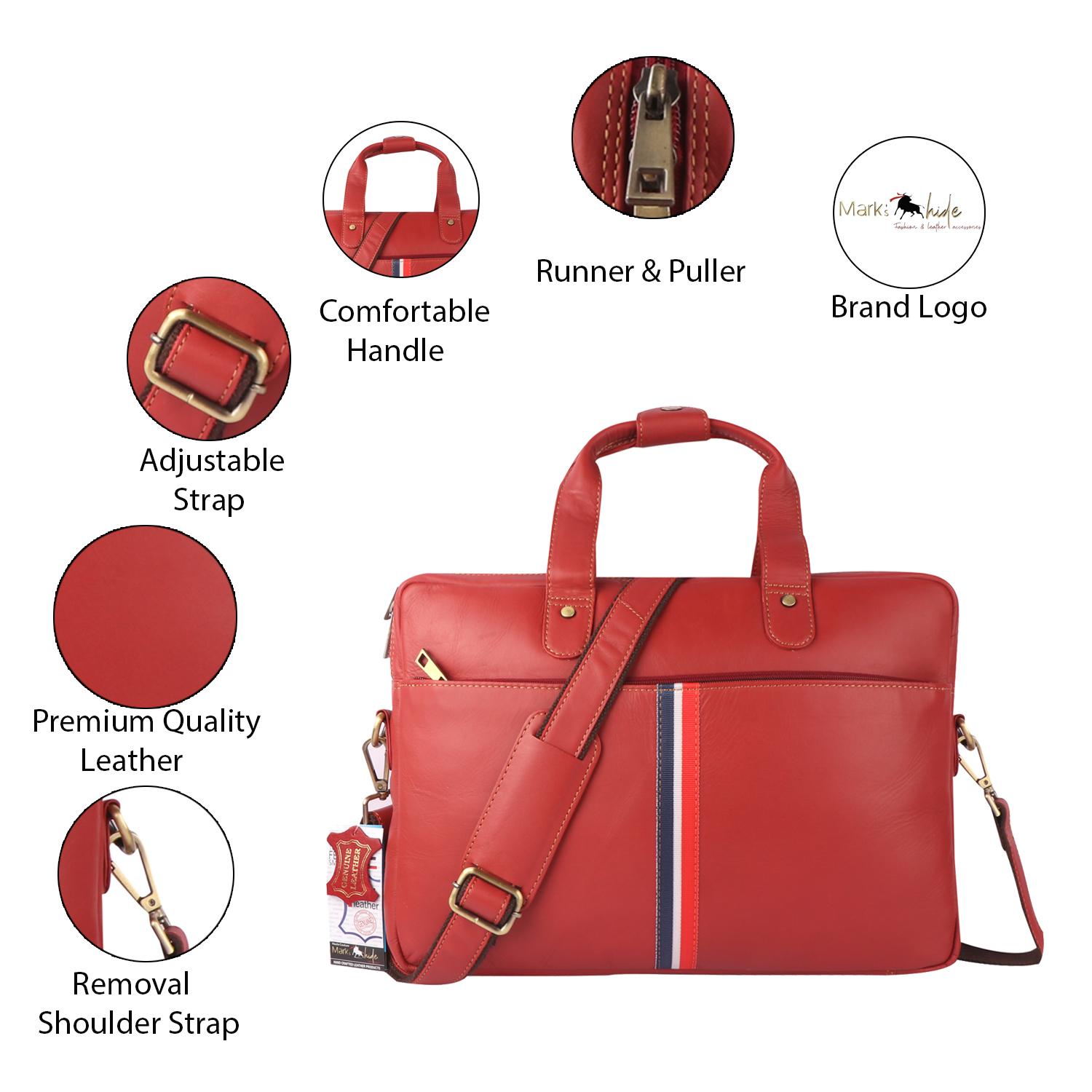 ·         100% GENUINE LEATHER: Experience luxury and durability with our MARK’S HIDE Laptop Bag Crafted from full-grain cow leather. Designed for both men and women, this high-quality leather bag is perfect for daily use, fitting laptops from 13 to 15.6 inches. Elevate your professional look with this stylish and elegant office accessory.